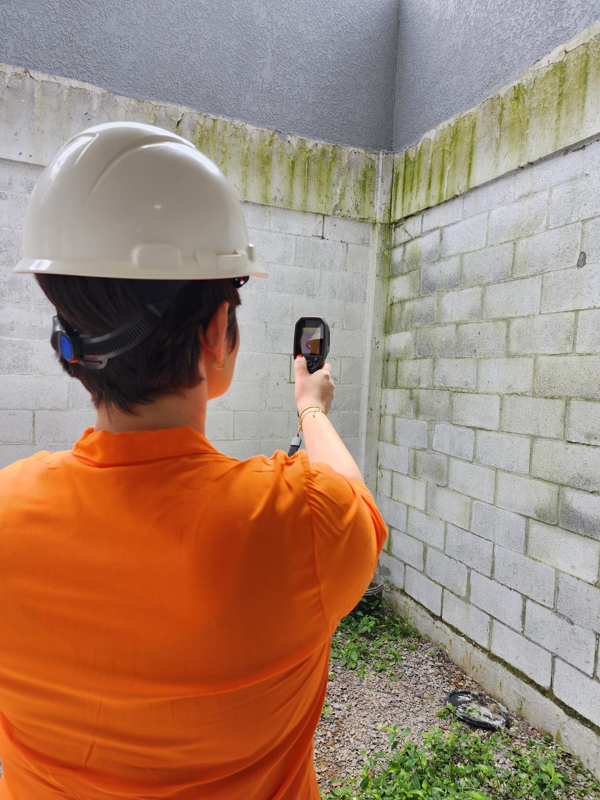 Câmera de alta resolução: fotografias com qualidade ajudam ao esclarecimento das anomalias existentes acrescentando qualidade técnica ao embasamento do laudo. Câmera termográfica de alta resolução: identifica focos de vazamento e umidade através de uma imagem térmica onde a luz infravermelha identifica o calor presente no objeto/local, renderizando a temperatura e transformando em uma imagem de alta resolução. Scaner digital de parede: identifica a existência de vergalhões, tubulação e eletricidade na parede/pilar ou viga sem a necessidade de quebra.